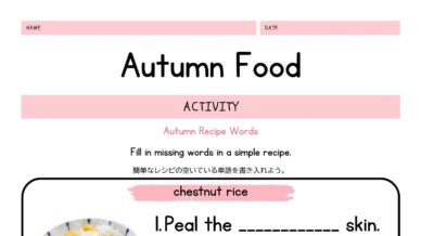 【ワークシート】アクティビティ 【秋の食べ物】海外保育×子ども英会話のママ講師がつくるアクティビティワークシート「Autumn Recipe Words」