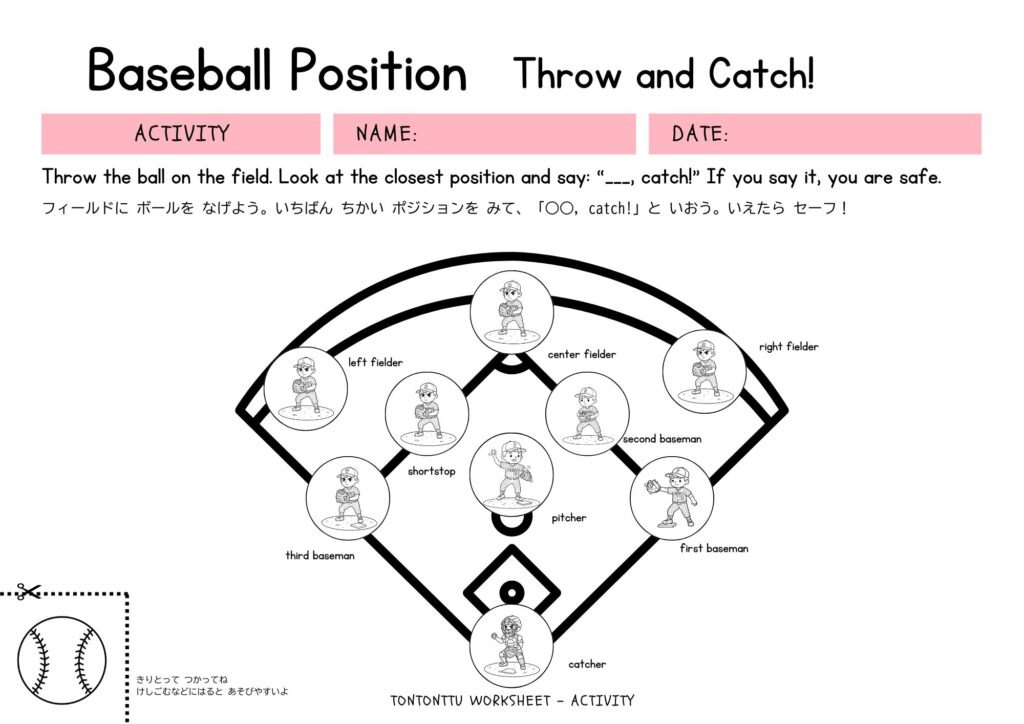 【野球のポジション×英語】子ども向け英語練習プリント「Throw and Catch」|元保育士が作成