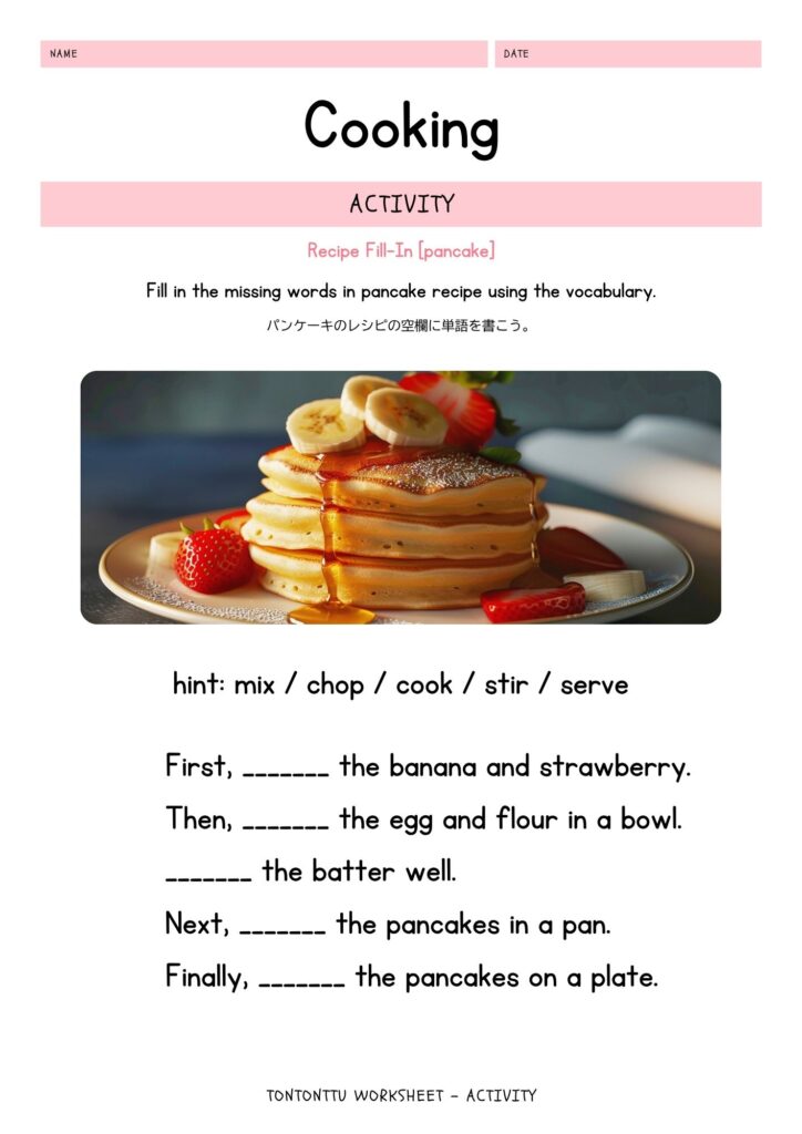 アクティビティ内容:【Recipe Fill-In [pancake]】