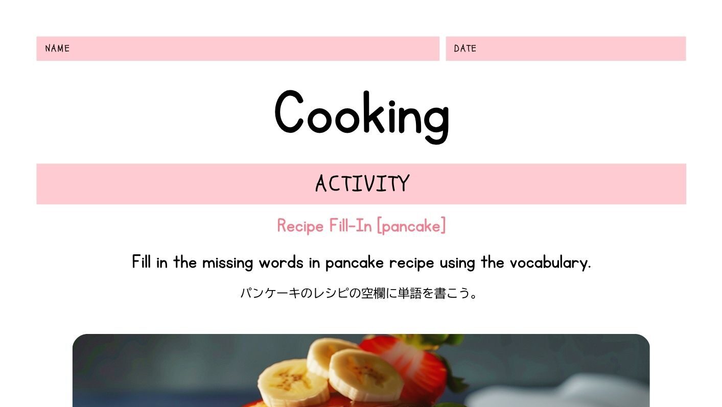 アクティビティ内容:【Recipe Fill-In [pancake]】