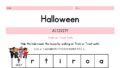 仮装のキャラクターと衣装の絵を線でつなぐことで、ハロウィンの単語を楽しく覚えられます。