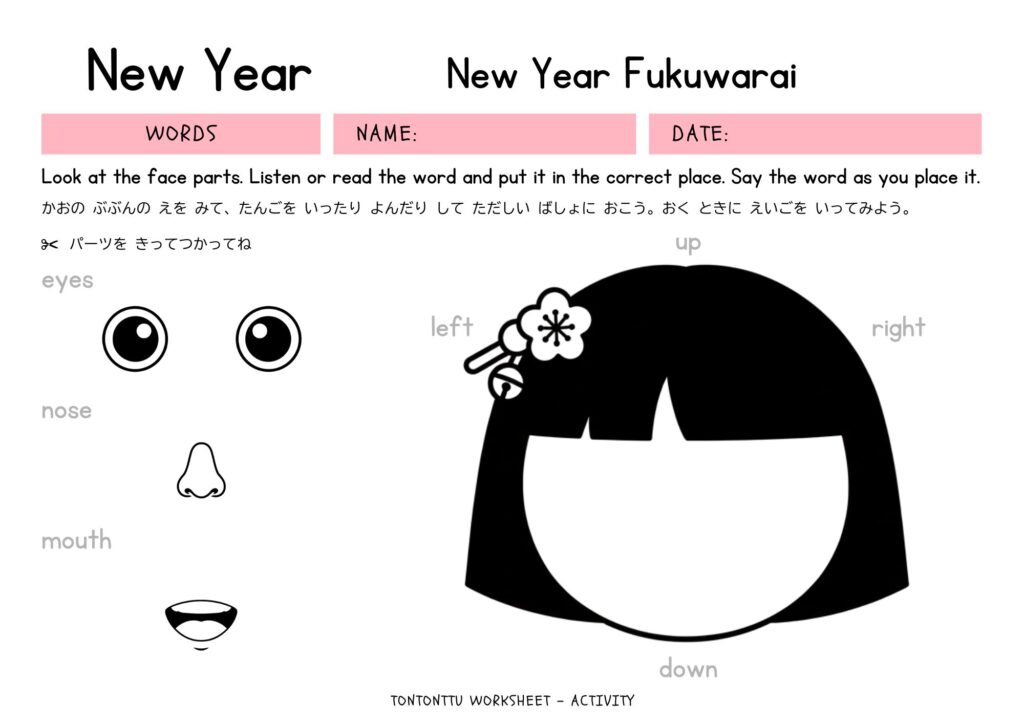 日本の伝統あそび「福笑い」を英語学習に取り入れた、新年にぴったりのアクティビティです🎍