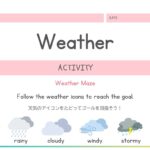 無料ダウンロード|子どもと学ぶ!天気の英語表現【アクティビティ2】ワークシート 無料 【ワークシート】アクティビティ 2025.05.152025.12.06 スポンサーリンク こんにちは! 今日は「天気(weather)」をテーマにしたワークシートをご紹介します! (weather2) activity worksheetダウンロード 子どもと学ぶ!天気の英語表現|おすすめ絵本&歌も紹介【ワークシート付き】こんにちは!今日は「天気(weather)」をテーマにした英語学習をご紹介します☁️☂️季節の移り変わりを感じながら、子どもたちが身近に感じる天気について英語で楽しく学べる方法をまとめました。覚えておきたい!天気の基本英単語10選晴れ su...