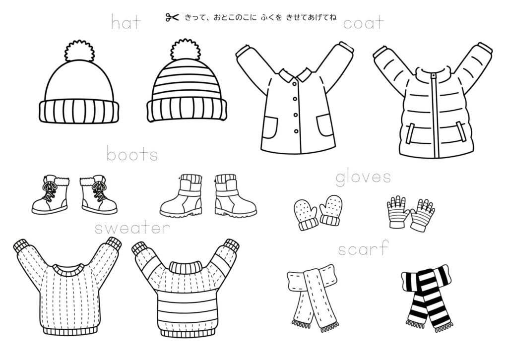 - ワークシートから好きな冬の服を切り取る