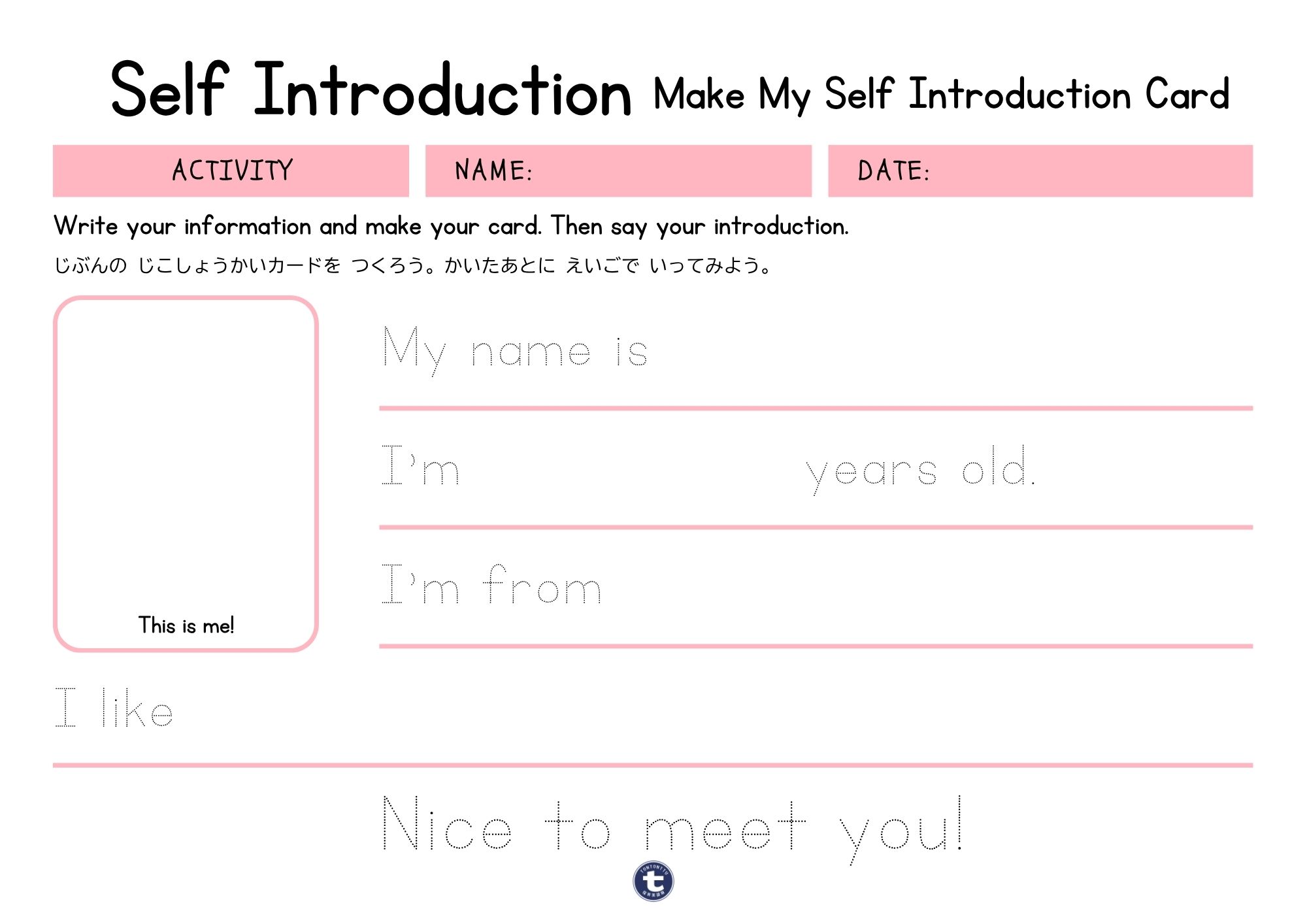 NEW無料 【ワークシート】アクティビティ 無料ダウンロード【自己紹介×英語】英語で自己紹介カードを作りましょう!子ども向けワークシート 【ワークシート】アクティビティ【ワークシート】無料 基礎英語ワークシート