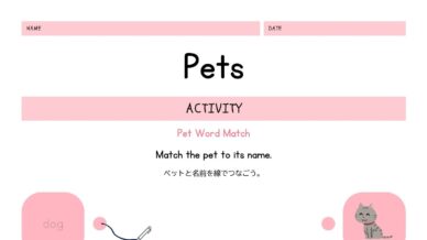 【動物:ペット】英語ワークシート|子ども向け動物アクティビティ「Pet Word Match」
