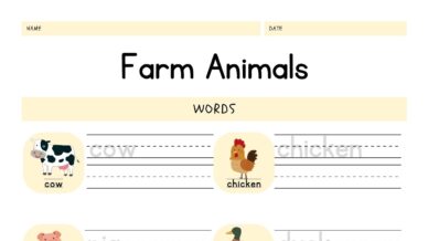【動物:牧場】英語ワークシート|子ども向け動物の単語練習