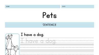 【動物:ペット】英語ワークシート|子ども向け動物の文章練習