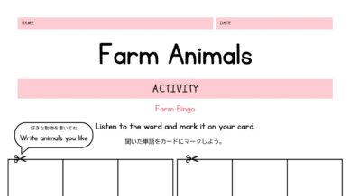 【牧場の動物】英語ワークシート|子ども向け英語アクティビティFarm Bingo(動物ビンゴゲーム)