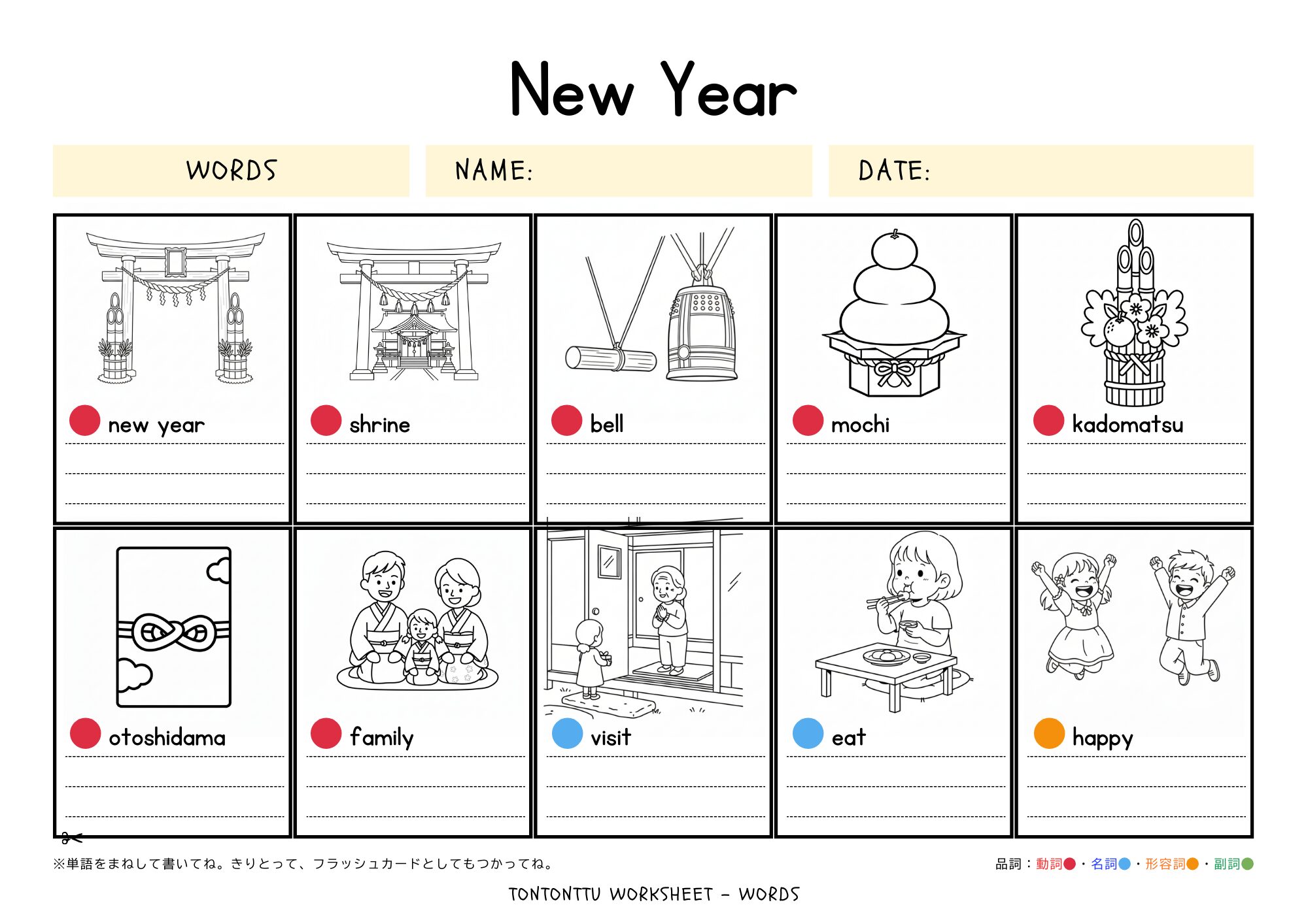無料ダウンロード【新年英語】海外保育×子ども英会話のママ講師がつくるワークシート【正月・単語練習】