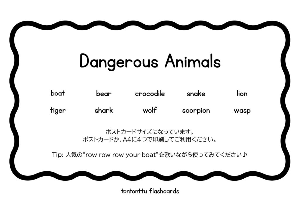 英語レッスンやおうち英語で使える、Dangerous Animals(危険な動物)フラッシュカードを作りました!