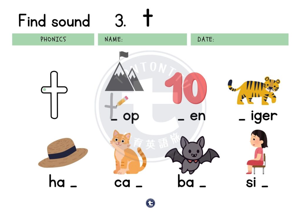 無料ダウンロード【フォニックス×音探し】「t」の練習(全41回)|子ども向けフォニックスワークシート