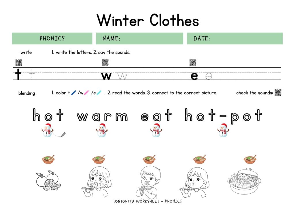 冬にぴったりな食べ物をテーマに、音を意識しながら英単語を読む・書くフォニックスワークシートを作りました!