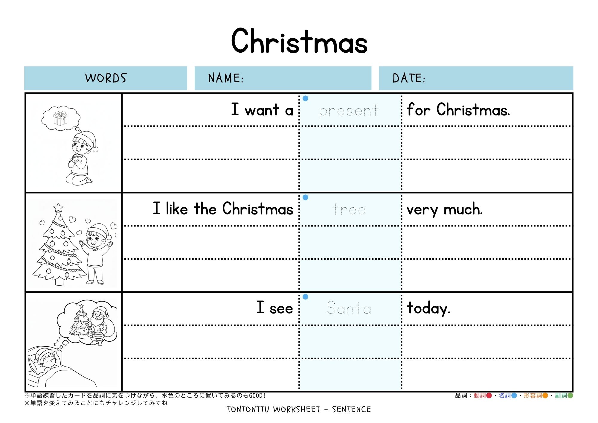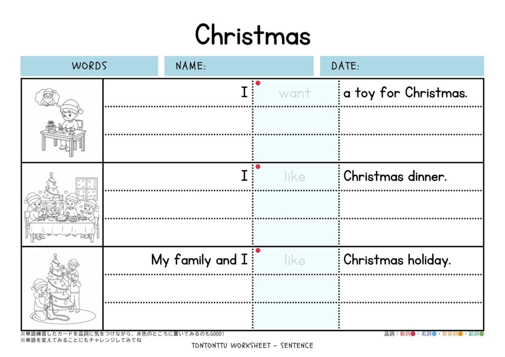 【クリスマス英語】海外保育×子ども英会話のママ講師がつくるワークシート【文章練習】