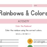 英語で虹と色を学ぼう!【文章練習】ワークシート 会員限定 【ワークシート】文章練習 2025.03.102025.07.16 スポンサーリンク 虹を見るとワクワクする子どもたちも多いはず! 虹の色を英語で学びましょう♪ (rainbow&colors) sentence worksheetダウンロード 英語で虹と色を学ぼう!幼児向け絵本&音楽紹介虹を見るとワクワクする子どもたちも多いはず!今回は、虹の7色と英語での色の表現、幼児向けの英語絵本&音楽を紹介します♪虹の色を英語で言ってみよう!虹の7色は、英語で次のように表します!Red 赤 🔴Orange オレンジ 🟠Yellow 黄...