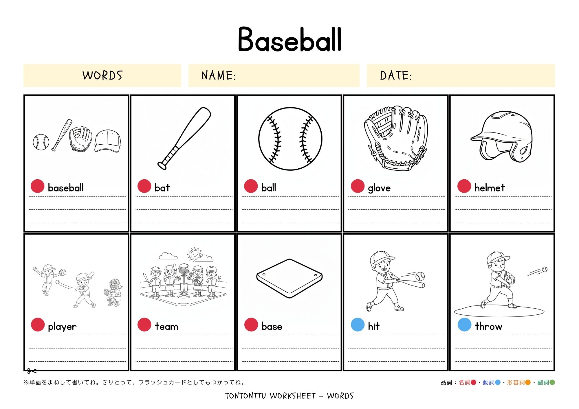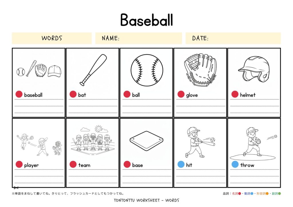 今回は、野球に関する英単語が学べるワークシートを作成しました♪