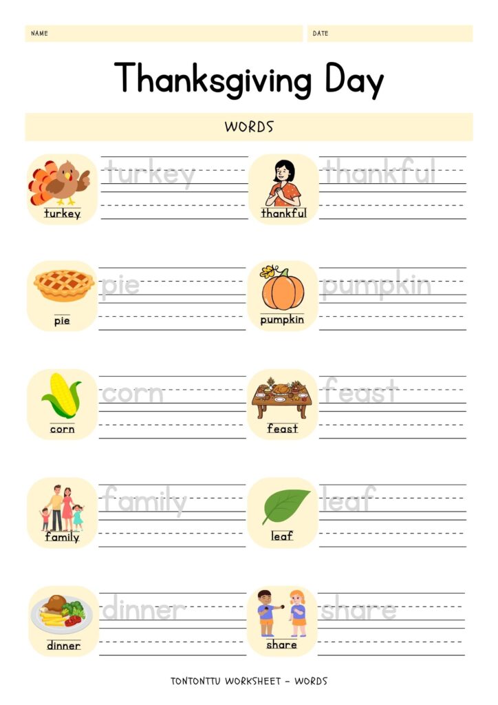 今回紹介するのは、サンクスギビングに関する英単語を楽しく覚えられる単語練習ワークシート。